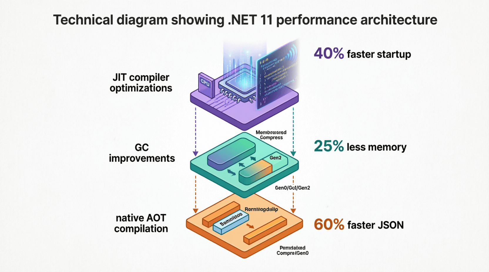 .NET 11 introduces a completely redesigned Just-In-Time (JIT) compiler featuring profile-guided optimization (PGO) enhancements and cross-method inlining. The new JIT analyzes runtime behavior more aggressively, making smarter decisions about code optimization paths.