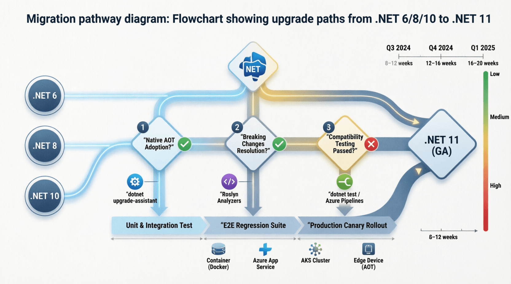 - How would you migrate a large .NET 10 enterprise application to .NET 11 while minimizing downtime and risk?