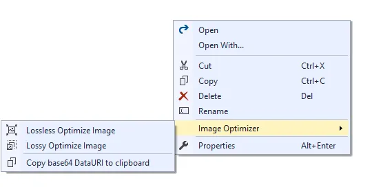 Image Optimizer extension for Visual Studio is very simple to use and is very efficient in optimizing the images. It uses industry-standard tools to optimize any JPEG, PNG, and GIF, including animated GIFs. It can do both lossy and lossless optimization.